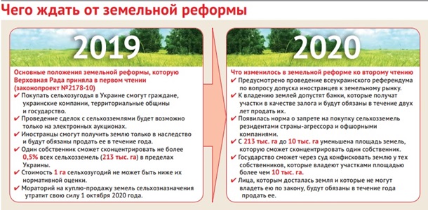 Верховная Рада в ноябре 2019 года попыталась дать старт земельной реформе. Парламент принял в первом чтении разработанный депутатами партии Слуга народа законопроект №2178-10.