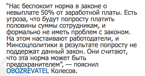 “Это не решает проблемы тех, кому уже должны денег. Вторая проблема — не платить половину зарплаты можно вполне легально, и ничего не будет. С другой стороны, уголовная ответственность усилилась. Сейчас можно погасить задолженность до суда и проблемы исчезнут, то согласно этим правилам, это можно сделать до подписания обвинительного вывода. Также радует тот факт, что работники могут на законных основаниях не работать, если им не платят заработную плату”, — подчеркнул в комментарии Андреев.