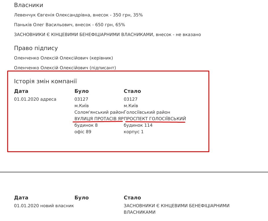 Однако, как стало известно OBOZREVATEL, в январе 2020 года компания «Украгрохгрохолд» изменила адрес. Теперь она зарегистрирована на пр. Голосеевском.