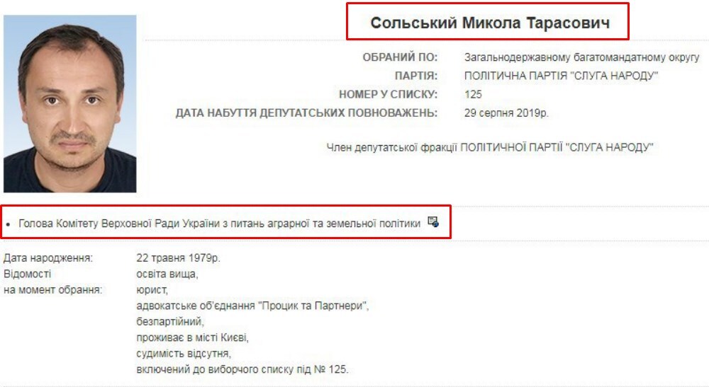 Давний бизнес-партнер Андрея Богдана, на днях ушедшего в отставку с поста главы Офиса президента, – агробарон с неоднозначной репутацией Николай Сольский. К своим «регалиям» не так давно он добавил новые – теперь Сольский народный депутат («Слуга народа»), глава Комитета аграрной политики и земельных отношений. Как утверждают источники, это стало возможным именно благодаря протекции Богдана.