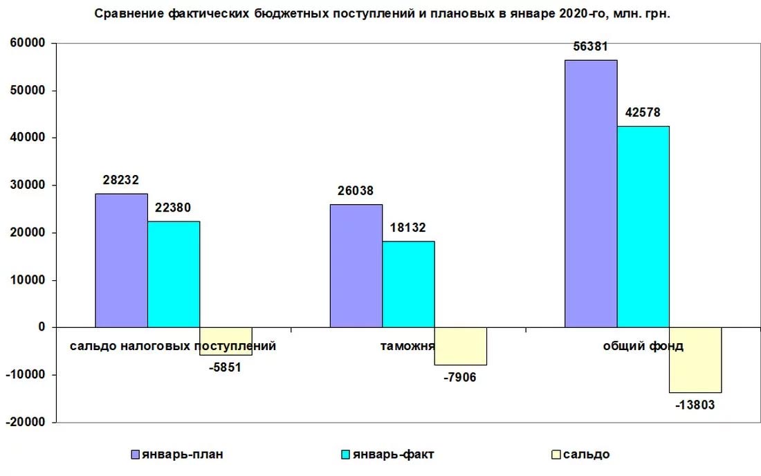 Сальдо налоговых поступлений показало дефицит средств в размере 5,8 млрд грн. Общее недопоступление средств в общий фонд бюджета составило 13,8 млрд грн, или 25% от планового показателя. Такого бюджетного провала в бюджетной системе не было со времен кризиса 2014-2015 годов.