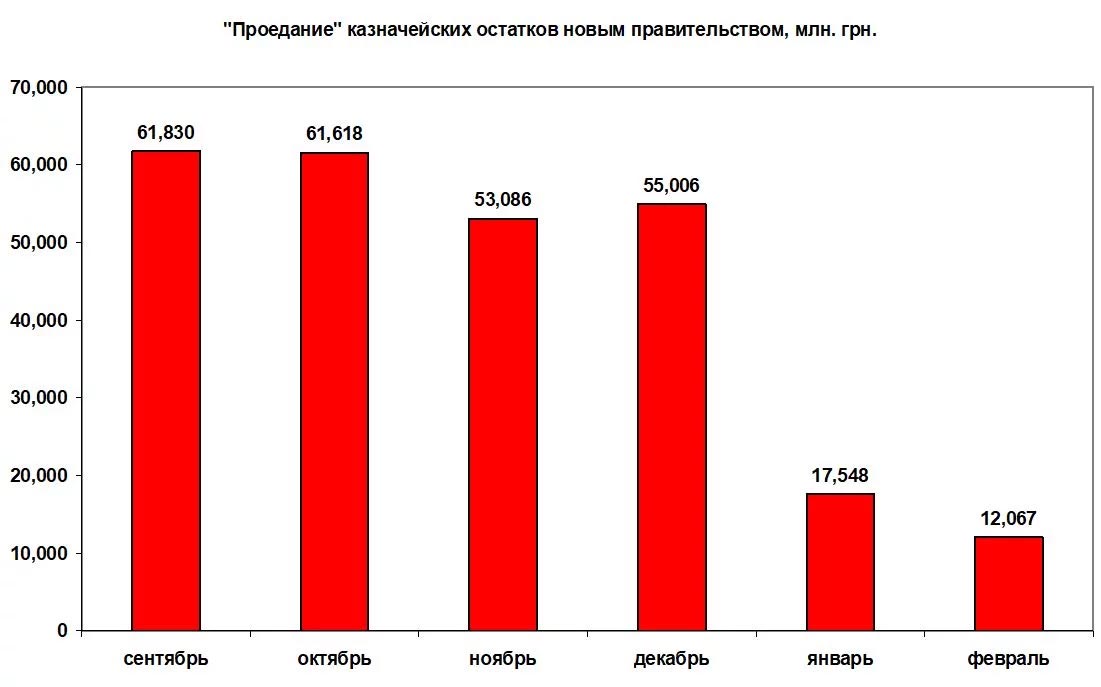 В феврале динамика ухудшилась: в 2020-м – 12 млрд грн, немногим более февраля 2019-го (11,9 млрд) и уже значительно меньше уровня 2018 года – 20,1 млрд грн. Деньги постепенно «тают», а нового пополнения в нужном объеме как не было, так и нет. Но вот что интересно. Предыдущее правительство передало новой власти рекордный уровень остатков на ЕКС – на начало сентября 2019-го в казначействе были 61,8 млрд грн.