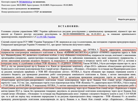В судебном реестре мы находим подтверждение возможной коррупционной деятельности, «Киевгорсвет» перечислил деньги «Запорожскому коксохимремонту» за несуществующие работы. Ранее коммунальное предприятие выполнило их собственными силами.
