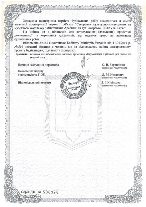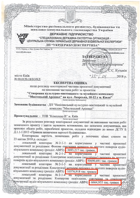 Оказалось, подготовкой тендерной документации занималась… компания «Комплекс В». «Мистецький Арсенал» также предоставил проектно-сметную документацию. Общая сумма экспертной оценки составила 71,6 млн грн, не 94,3. Остается открытым вопрос, откуда взялись дополнительные 22,7 млн грн.