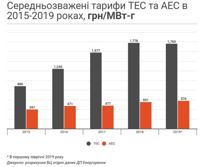 В тот же период тариф ТЭС вырос с 880 до 1760 грн / МВт-ч, или на 100% .