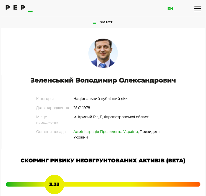 Например, коррупционные риски в имуществе президента Украины Владимира Зеленского составляют 3%.