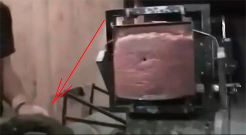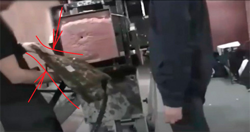 На 16-й секунде передняя часть бронежилета складывается почти перпендикулярно от своего веса в руках: