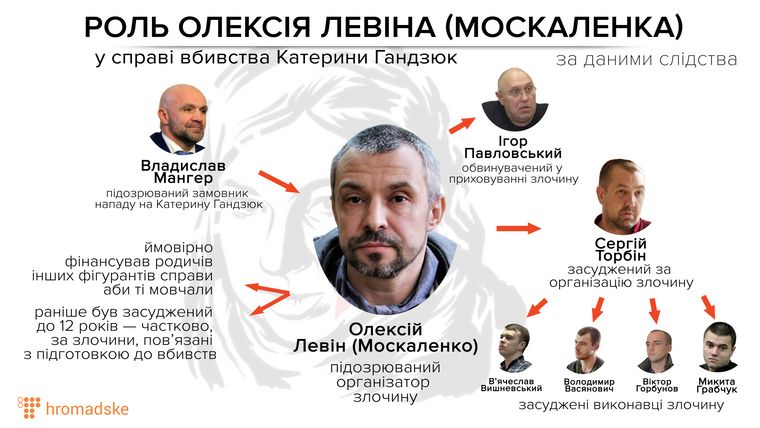 Правоохранители считают, что Левин дал Торбину $5 тыс. на реализацию нападения на Гандзюк. Когда уже задержали исполнителей, Торбин просил у Левина еще $2 тыс. для укрытия. Тот предоставил.