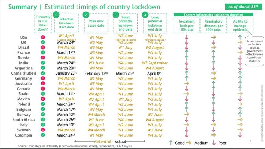 Американское аналитическое агентство Boston Consulting Group провело исследование и составило прогноз для разных стран, когда примерно закончится карантин из-за коронавируса. Их прогноз выглядит неутешительно, сообщает издание Новое время.