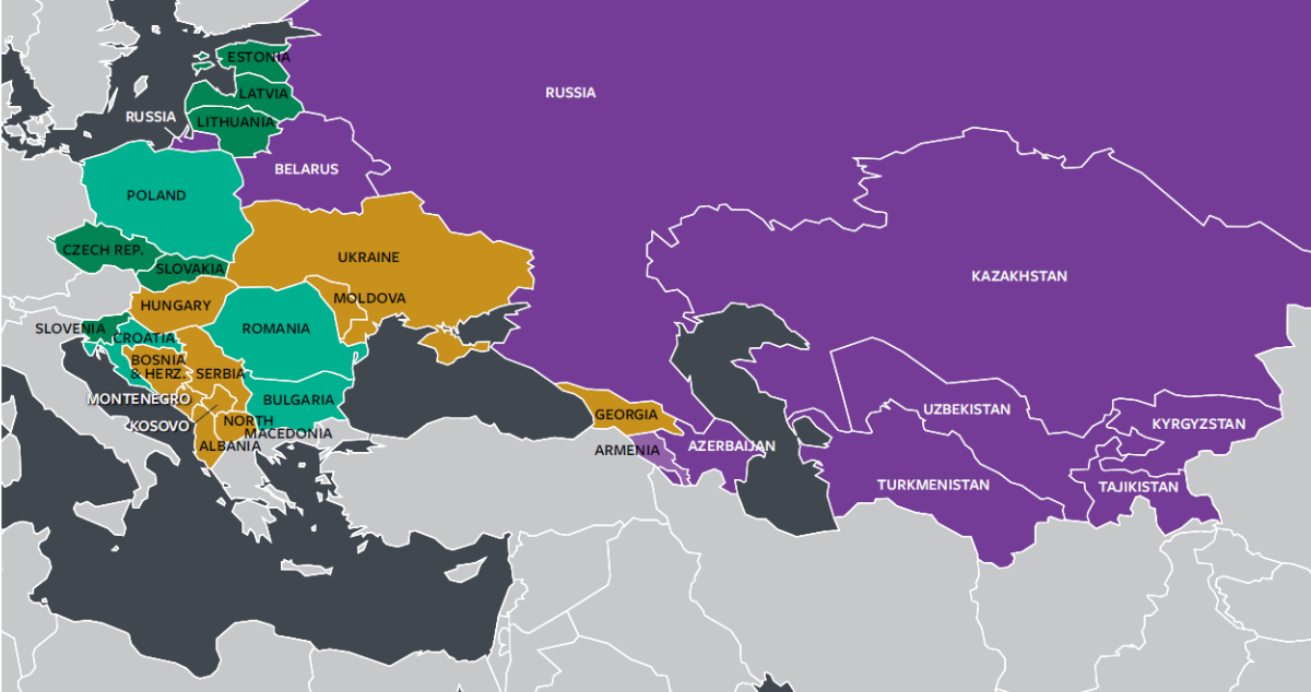 В нем анализируется ситуация в 29 странах Европы и Азии, в основном из бывшего советского лагеря, в период с января по декабрь 2019 года.