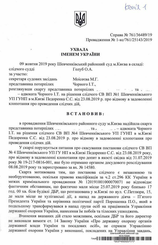 Игорь Головань, адвокат, опубликовал в своей колонке на сайте издания «Украинская Правда», скан-копии постановления Шевченковского районного суда, Киев, о допросе Романа Трубы, директора ГБР, и Андрея Портнова, юриста.