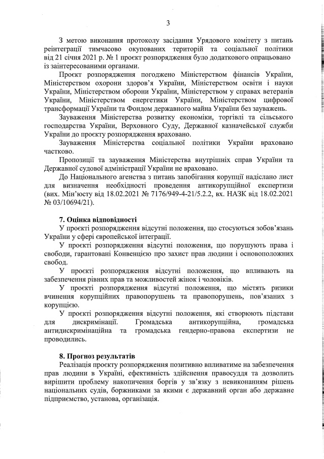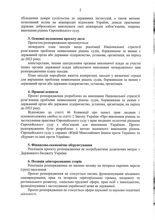 Принятие проекта распоряжения позволит Украине погасить государственный долг в связи с невыполненными решениями судов, прекратить обращения в ЕСПЧ», — добавляют там.