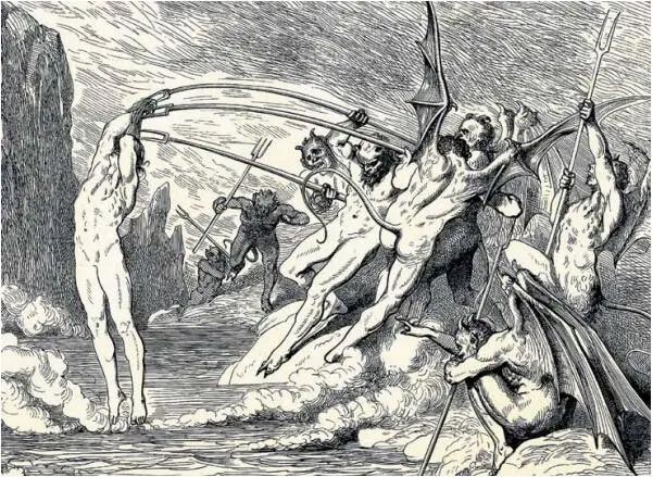 Варка «мздоимцев» в масле или смоле применялась также в Китайской Империи и целой веренице других древних государств. Так, в «Божественной комедии» Данте Алигьери мздоимцы (современные коррупционеры. — Авт.) попадают в восьмой, предпоследний круг ада. Там они кипят в смоле, а в тех, кто высунется, черти вонзают багры, что отображено на известной гравюре Гюстава Доре 1860-го года.