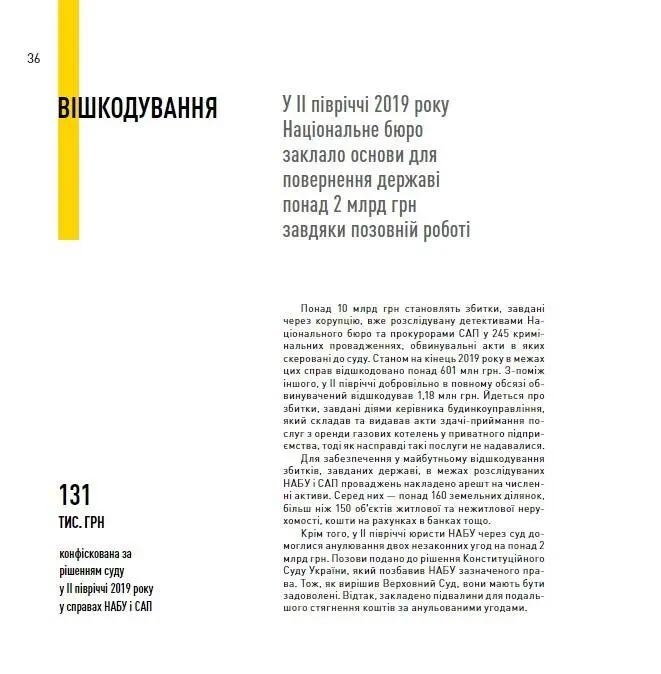 Развернутый отчет публикуется на официальном сайте НАБУ и в правительственном курьере. Крайний отчет о результатах деятельности Национального бюро за второе полугодие был обнародован 7 февраля 2020, что соответствует определенному законодательством срока. Анализируя этот документ, можно найти очень интересные цифры, которые свидетельствуют об эффективности работы.
