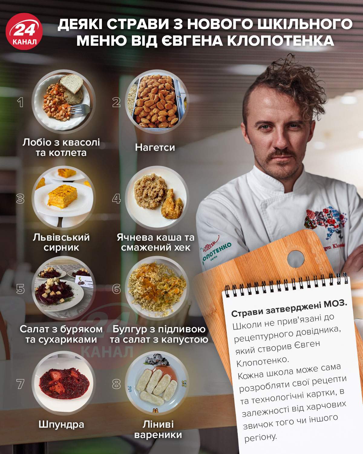 Некоторые блюда из меню для школ от Евгения Клопотенко / Инфографика 24 канала