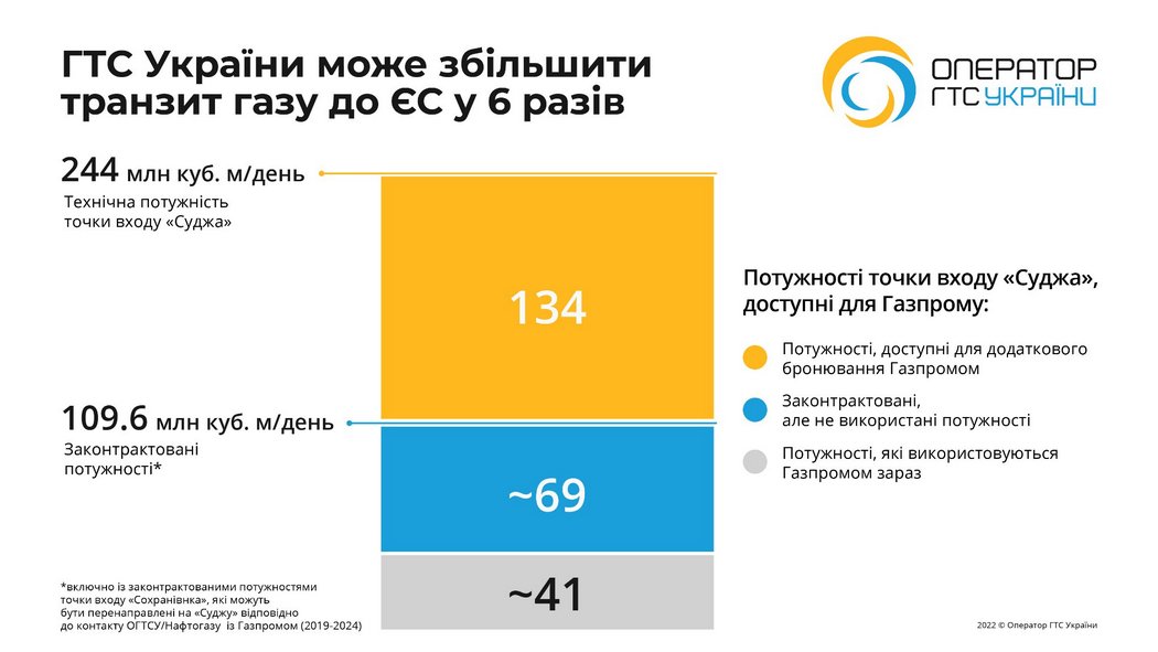 Оператор ГТС Украины неоднократно заявлял, что украинские трубопроводы способны транспортировать в Европу более 200 млн куб. м газа в сутки, тогда как общая мощность Северного потока – лишь 167 млн куб. м (сейчас он работает всего на 20% мощности).