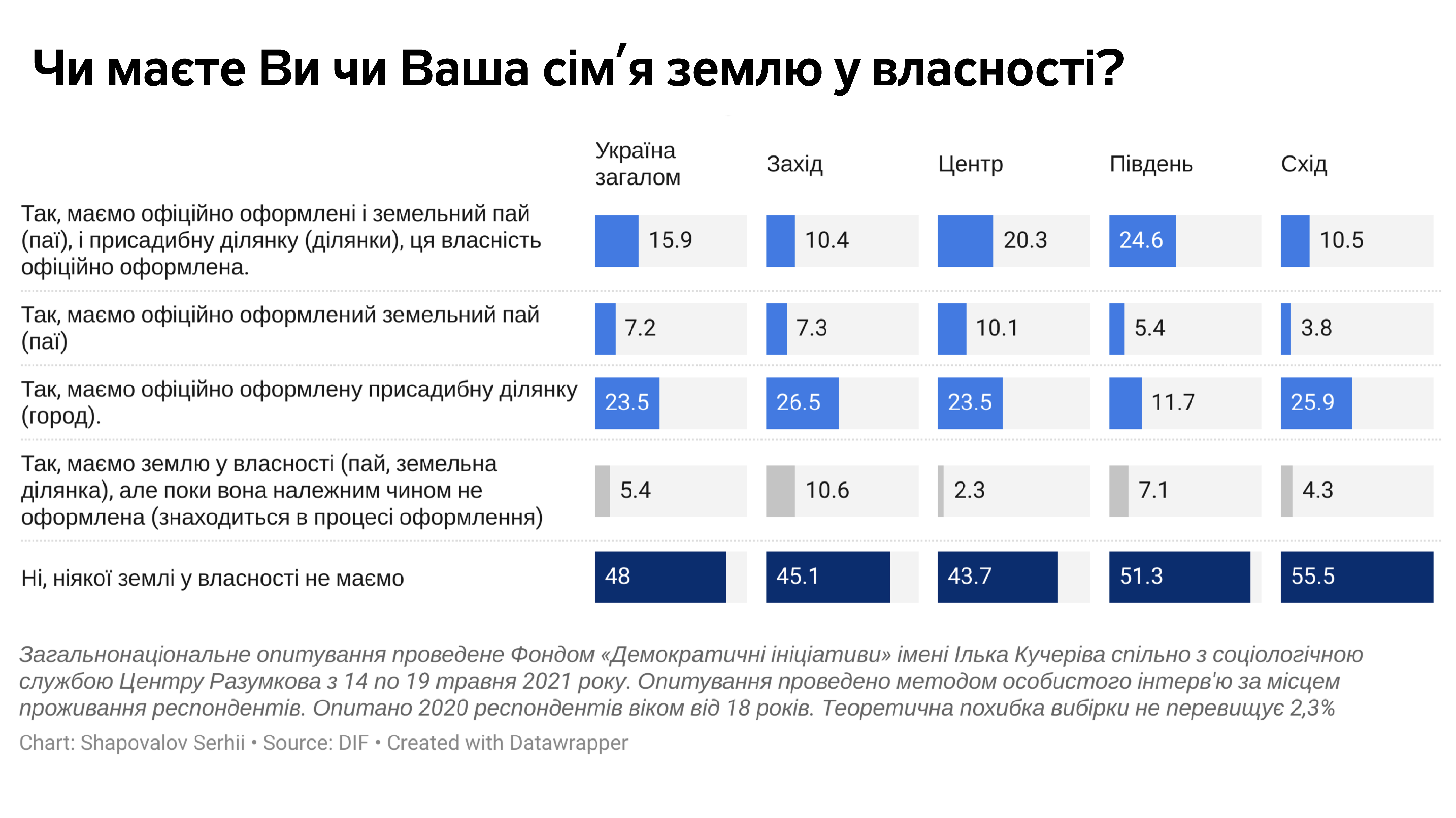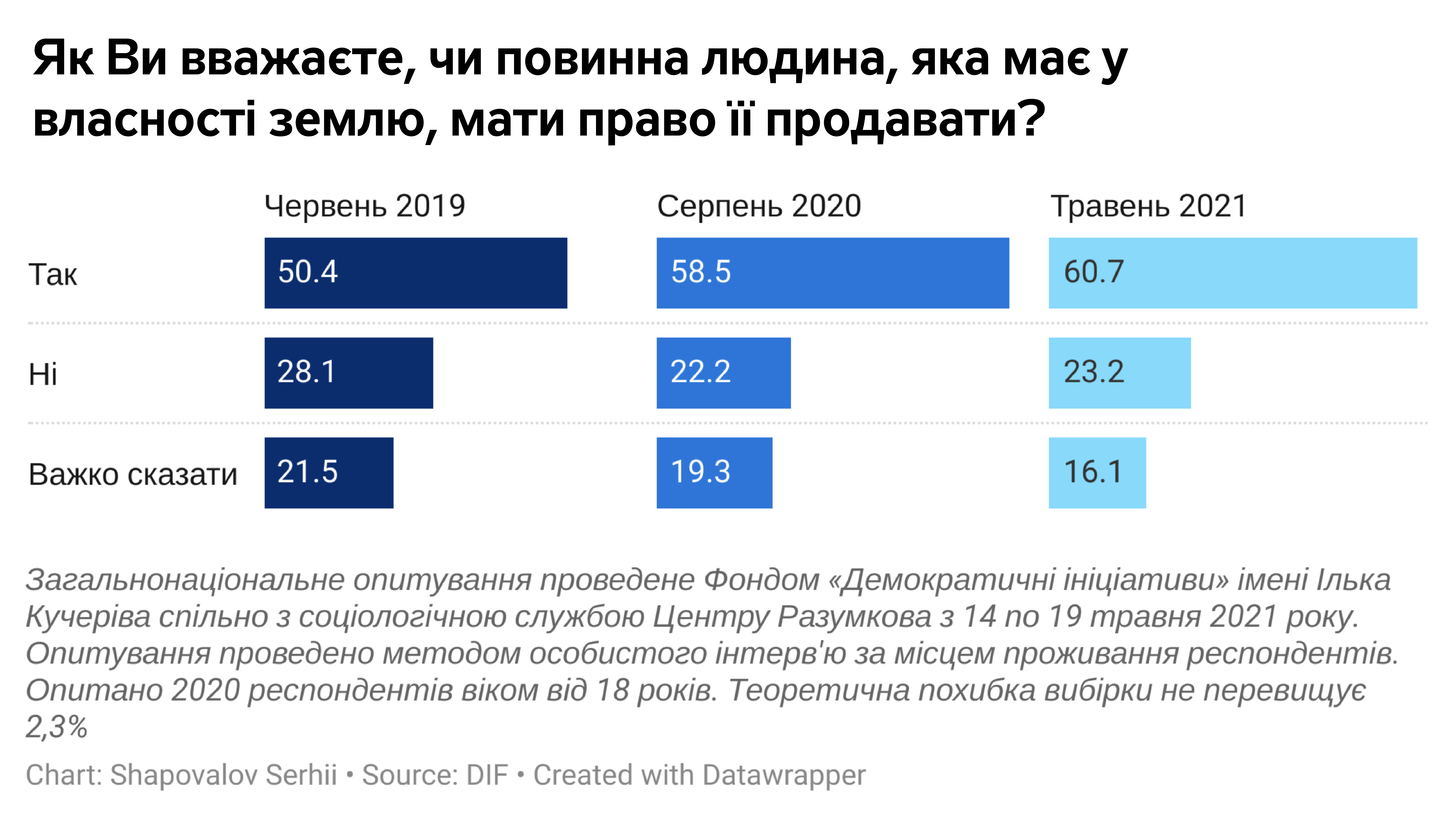 С одной стороны, многие владельцы паев считают, что нынешняя земельная реформа станет повторением неудачной и несправедливой массовой приватизации 1990-х. О том, что земли скупят олигархи или дельцы, чтобы потом продать иностранцам, говорили в Луганской, Львовской, Черниговской, Донецкой, Херсонской и Одесской областях.