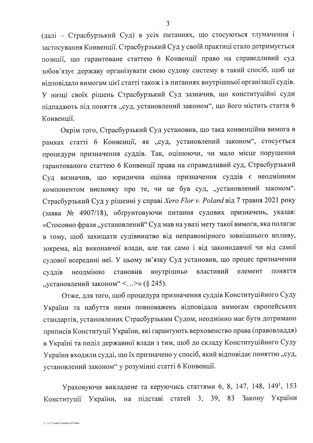 При такой ситуации принесение присяги судьи КСУ А.Петришиным и А.Грищук привело бы к неправомерному увеличению конституционного состава КСУ – с 18 до 20 судей, а затем к нелегитимности деятельности КСУ вообще. Одним из аргументов в пользу такого вывода было то, что Европейский суд по правам человека 7 мая 2021 г. в деле «Ксеро Флор против Польши» признал нарушение права человека на справедливый суд из-за того, что в принятии решения Конституционного Трибунала Республики Польша принимала участие лицо, назначенное Сеймом членом Конституционного Трибунала на несуществующую вакансию.