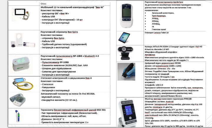 Фактически, это – набор, который содержит в себе все необходимые аппараты для анализа жизнеспособности организма пациента. Также – планшет, который имеет несколько выходов USB (можно подключиться к сети Интернет, к нему также присоединяется электронный стетоскоп и другие приборы). Аппараты сразу считывают данные пациента и их передают в систему.