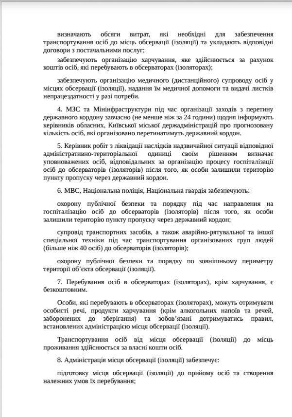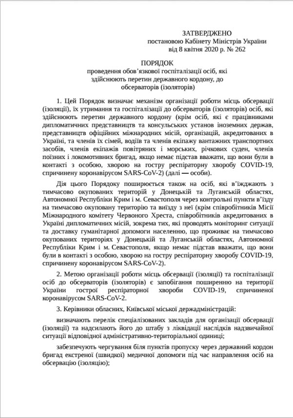 2. Утверждение порядка обязательной госпитализации всех въезжающих в Украину в обсерваторы (изоляторы). Местные органы власти получили право оплачивать проживание таких людей в обсерваторах за счет средств местного бюджета.