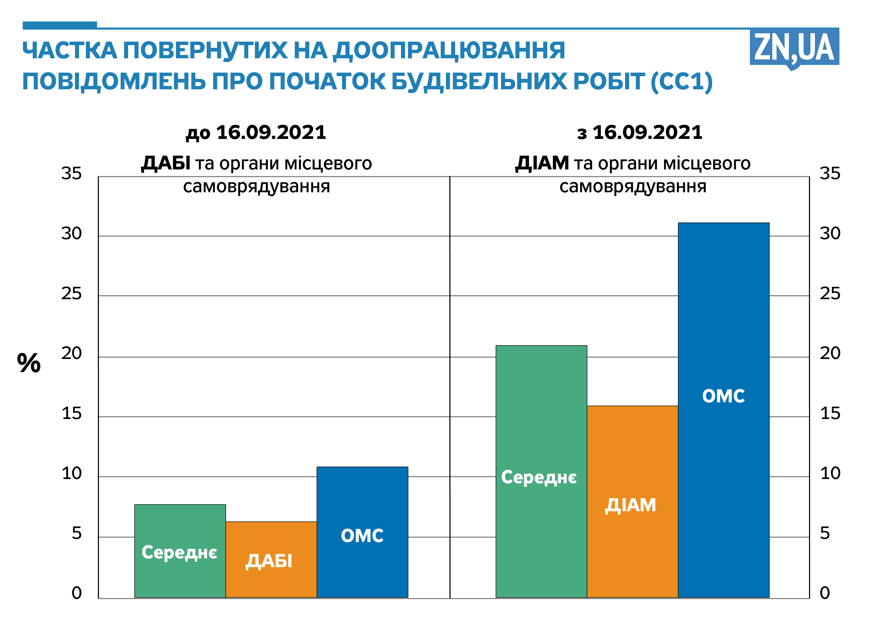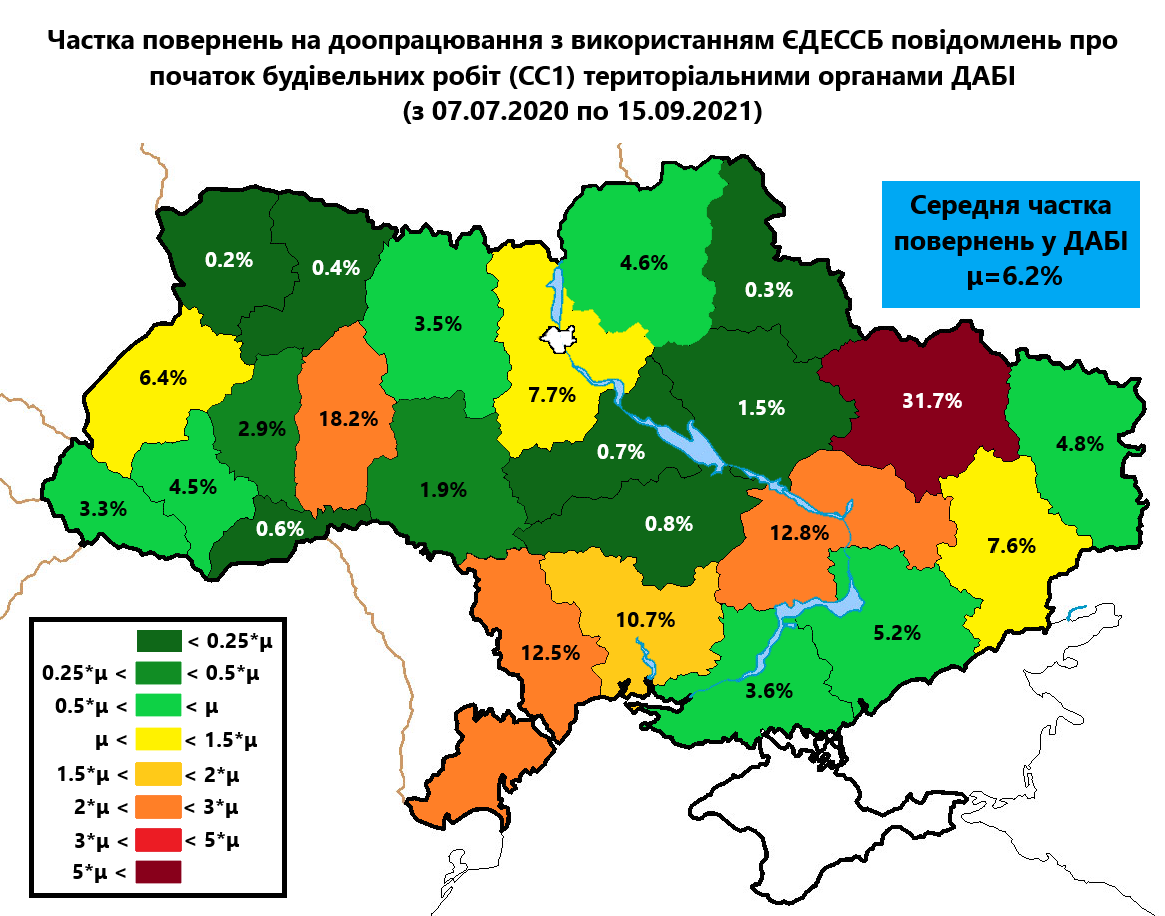 В отдельных городах ситуация выглядит абсурдно. Например, департамент ГАСК Киевской городской государственной администрации на каждое действующее сообщение продуцирует более двух возвратов на доработку. А в ГИАГ для сложного строительства СС3 при получении разрешения на два выданных разрешения приходится примерно один отказ. Так что начать в Киеве строительство самого низкого класса ответственности СС1 при полной его дерегуляции — в четыре раза сложнее, чем строительство высшего класса последствий СС3, требующее получения разрешения.