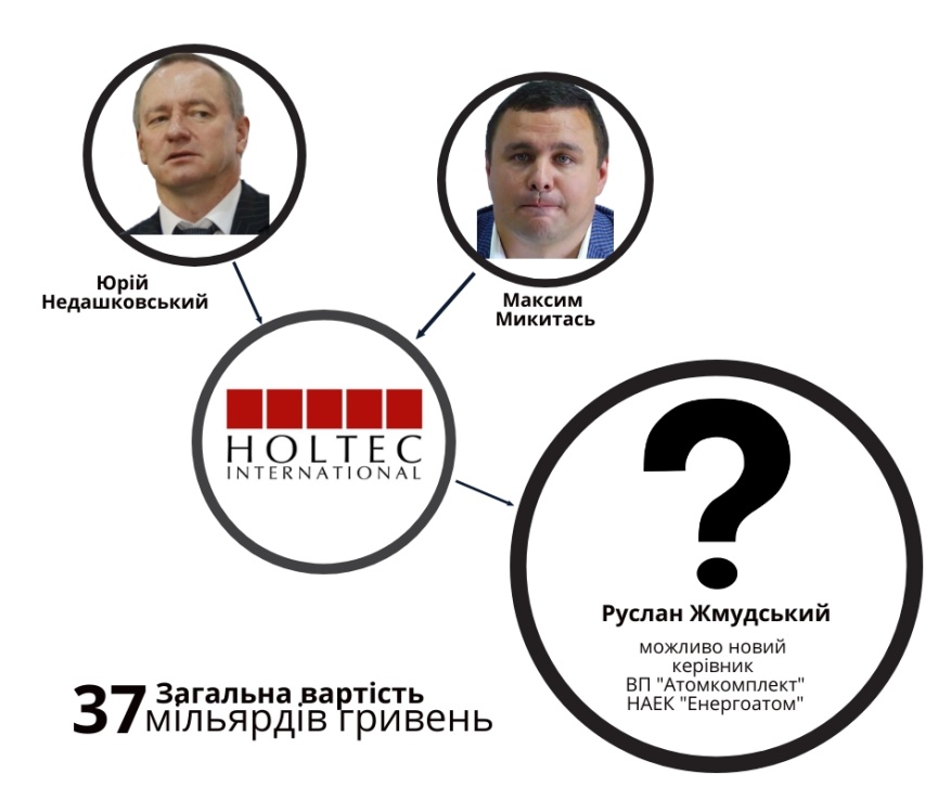 С тем же таки Недашковским связывают и саму компанию «Холтек Украина», в частности ее глава Сергей Тараканов в свое время работал у Недашковского на должности заместителя директората по эксплуатации и модернизации НАЭК «Энергоатом» и уже оттуда, не без протекции Недашковского, перешел в компанию , которая по странному стечению обстоятельств получила от Энергоатома многомиллиардный заказ на строительство хранилища отработанных ядерных отходов. Что касается наиболее вероятного кандидата на должность ОП «Атомкомплект» Руслана Жмудского, то он до последнего времени занимал должность коммерческого директора в той же таки компании «Холтек Украина».