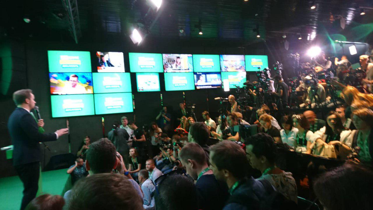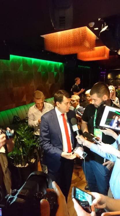 19:00 Выборы понемногу подходят к концу. В штаб «Слуги народа»пришел лидер партии Дмитрий Разумков.