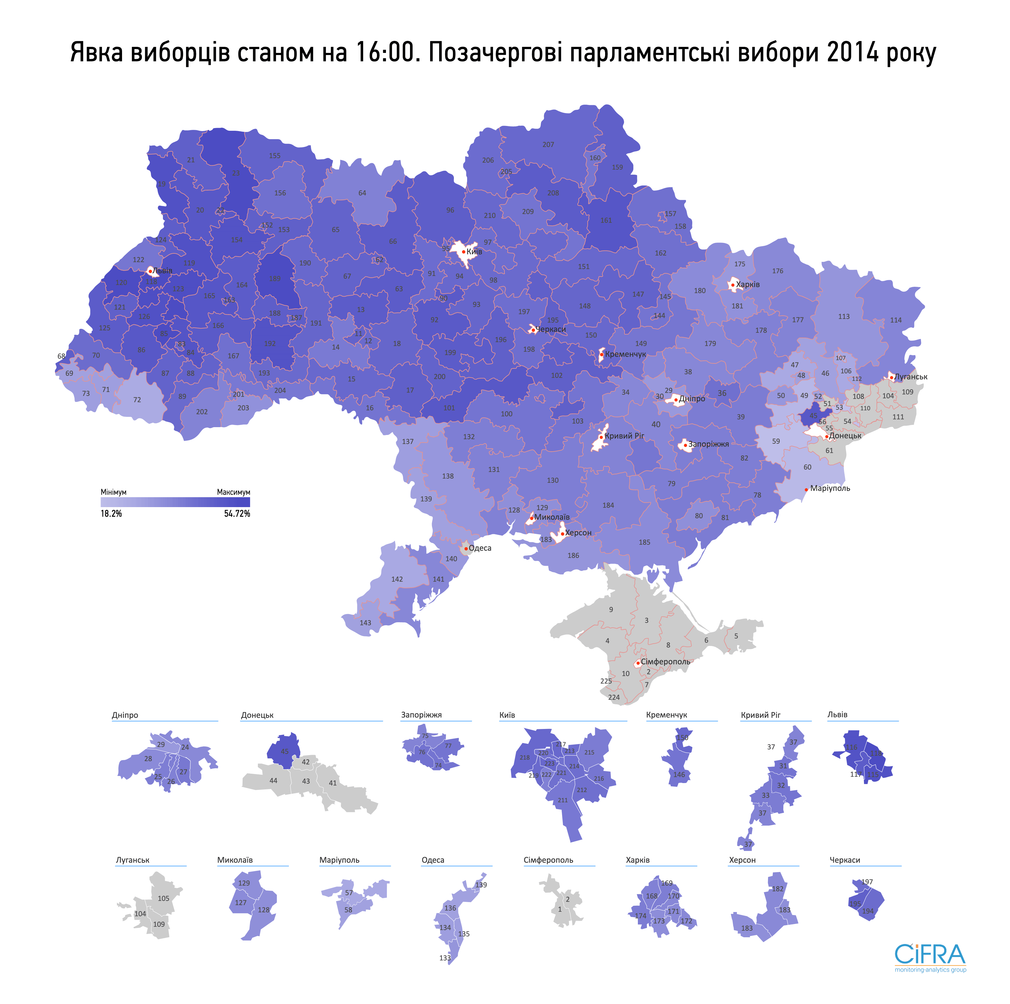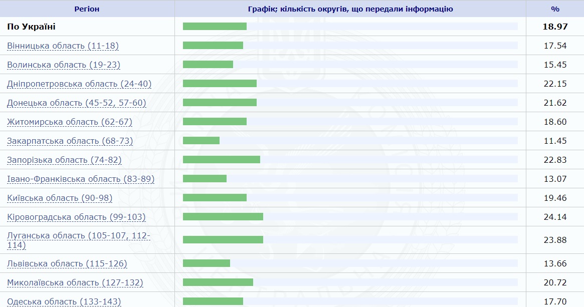 13:08 По последним данным ЦИК по 166 из 199 округов на выборах пока что проголосовало почти 19% избирателей. Самая большая явка — в Кировоградской области, меньше всех проголосовали в Закарпатской.