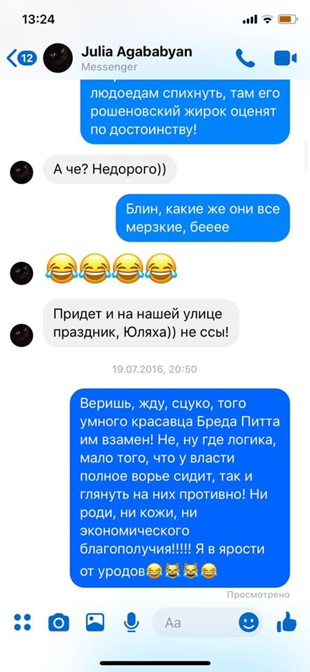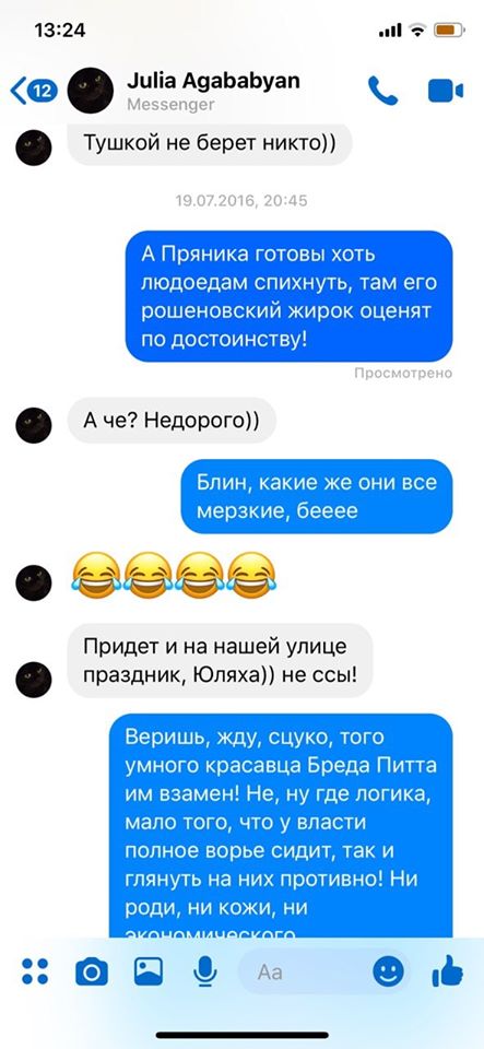 Также Добош приложил к посту скрины из мессенджера Кузьменко, где она переписывается со своей подругой с 20:37 до 20:50 19 июля 2016 года, хотя на пресс-конференции заявляли, что в это время она была неактивна. «Кстати, в мессенджере фейсбук невозможно изменить дату и время (это для неверующих)», — отметил адвокат.
