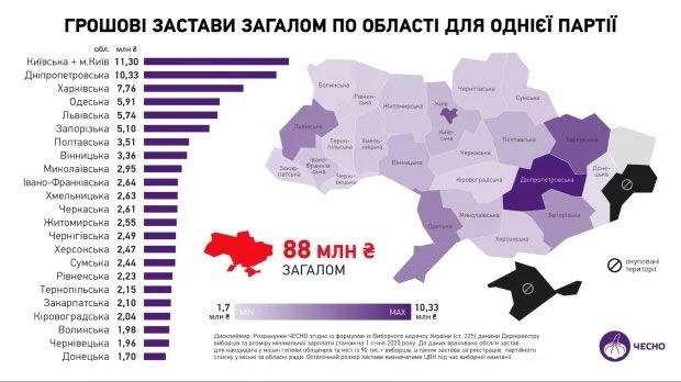 Движение «Честно» подсчитало, что для партий, которые будут выдвигать своих кандидатов во все советы и главы всех крупных городов Украины, одна только регистрация обойдется в 88 миллионов гривен.