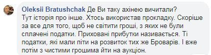 «Кто-то использовал прокладку. Скорее всего для того, чтобы не светить деньги, с которых не были уплачены налоги. Скрытые доходы называется. Те налоги, которые должны были пойти на развитие тех же Броваров. И уже потом с чистыми деньгами идти на аукцион», — объяснил позже журналист.