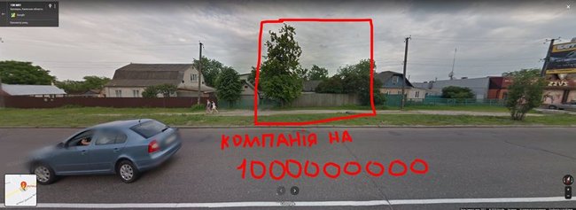 «Вы уже обратили внимание на скрины с Гугл-Мепс? Есть какие-то догадки, что это? Ладно, не буду долго тянуть. Это дом, который расположен по юридическому адресу ООО «Смартленд» (Бровары, улица Киевская, 130). Именно эта компания сегодня дала на аукционе самую высокую цену», — отметил он.