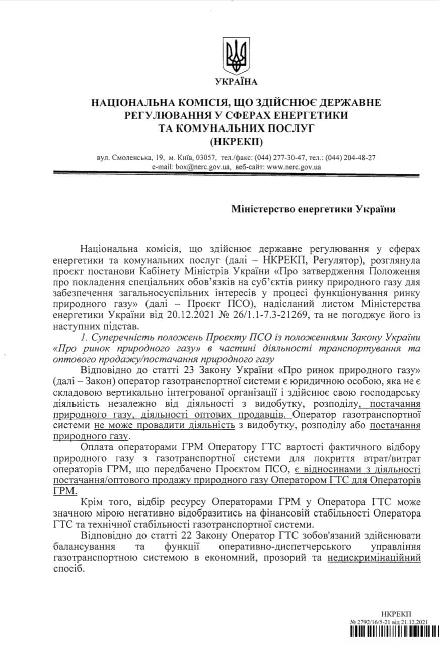 В распоряжении редакции ZN.UA есть ответ НКРЭКУ на проект «газового» ПСО.