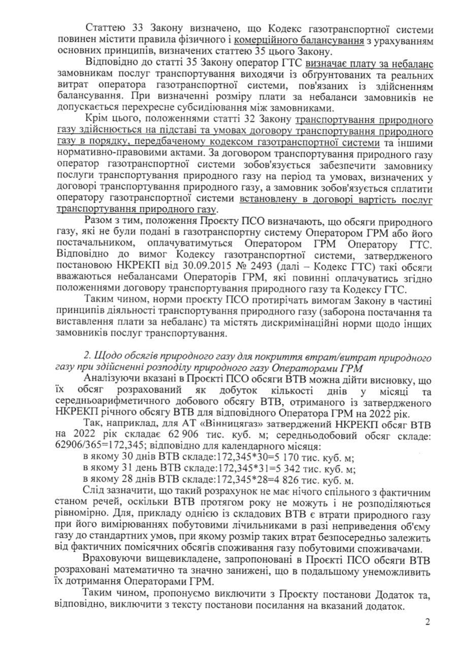 НКРЭКУ считает, что расчеты ПТЗ для облгазов не имеют ничего общего с фактическим положением вещей и специально занижены. Например, объем газа для ПТЗ Винница газа рассчитан как произведение количества дней в месяце и среднеарифметическому суточному объему, полученному из утвержденного ранее годового объема ПТЗ.