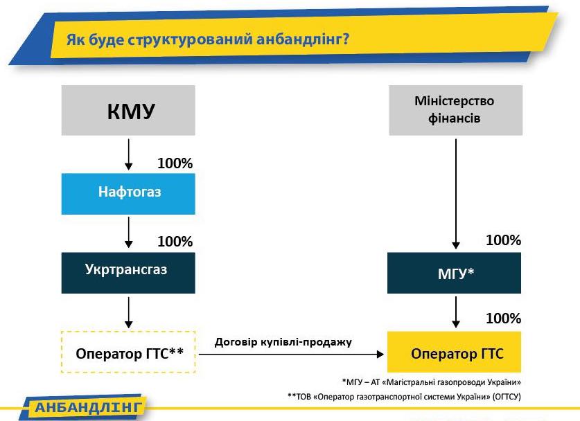 Речь идет об отделении газотранспортной системы и передаче ее в управление независимому оператору. Им стало ООО «Оператор ГТС Украины». Новый оператор передается в подчинение государственной компании «Магистральные газопроводы Украины», которой руководит Министерство финансов.