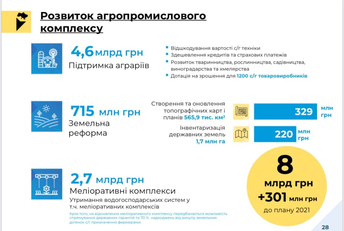На земельную реформу в проекте предусмотрено 715 млн грн.