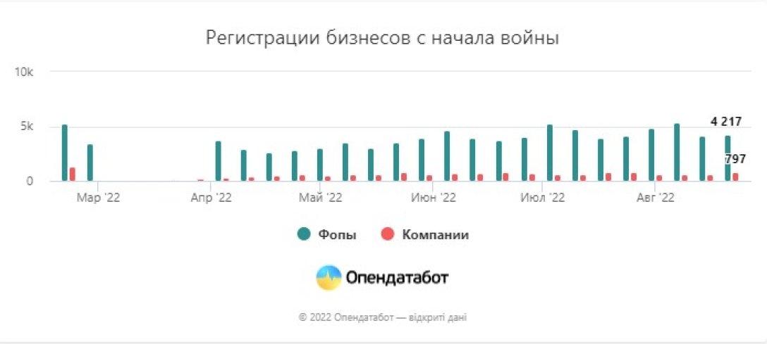В то же время, показатели зарегистрированных бизнесов в Украине за последние полгода растет. Самый большой показатель зафиксирован в первую неделю августа — 5 306 новых ФОП.