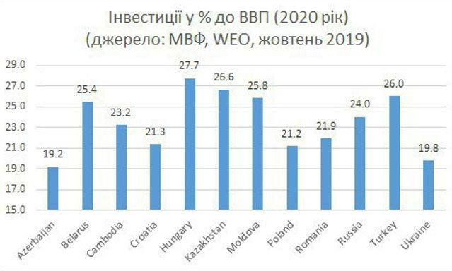 Как результат — показатели инвестиций в Украину, которые скрупулезно фиксируют в Международном валютном фонде. Согласно прогнозам МВФ, в 2020 г. по количеству прямых иностранных инвестиций в экономику в процентном соотношении с ВВП Украина опередит только Азербайджан. Обгоняют же нас с немалым отрывом Венгрия, Турция, Беларусь, Казахстан, Румыния, Россия и даже Камбоджа.