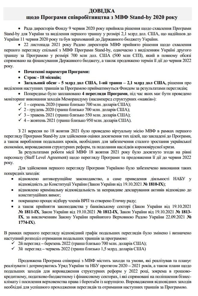 Жаль, не упоминалось, что вся эта помощь от западных партнеров может быть получена только при условии соблюдения Киевом определенных обязательств. В 2020 г. МВФ одобрил программу Stand-by для Украины.