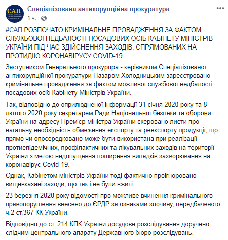 Пока дело открыто по факту халатности членов Кабинета министров. При этом в заявлении САП упомянут Гончарук. Расследовать дело будет ГБР.