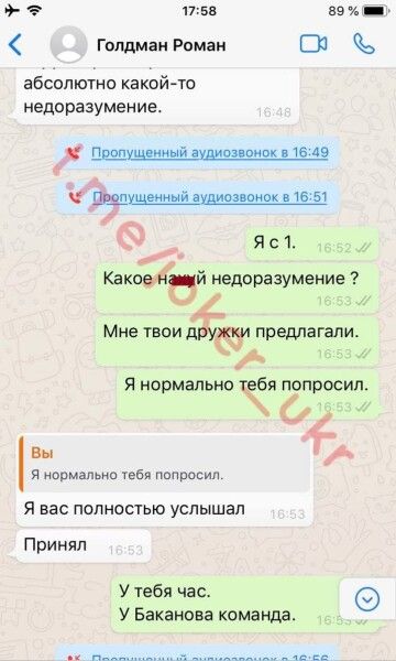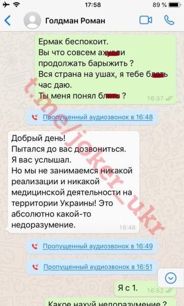 Один из независимых расследователей попытался связаться с пресловутым Гольдманом от имени главы Офиса президента Андрея Ермака и даже опубликовал их переписку. Впрочем, имела ли место данная переписка, проверить невозможно: расследователь скрывается под ником «Джокер» и личность свою не раскрывает.