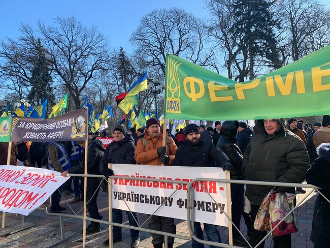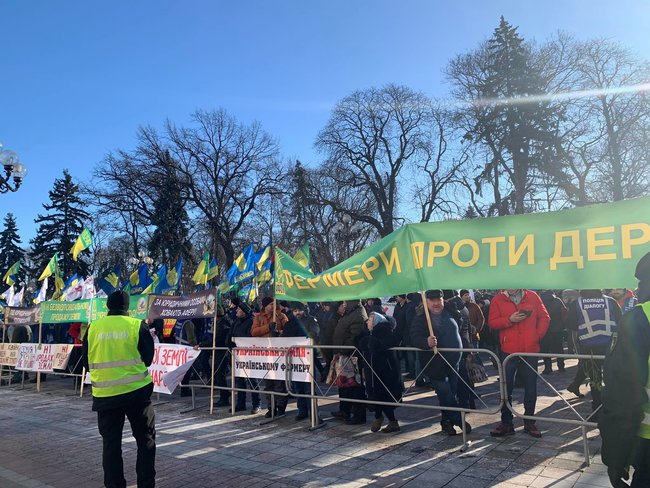 Кроме того, акция протеста против открытия рынка земли проходит под Офисом президента. Митингующие просят о встрече с Зеленским.