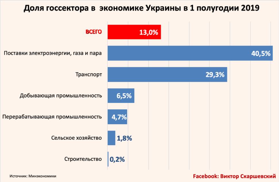 По информации Минэкономики, доля госсектора в украинской экономике составляет всего 13%.