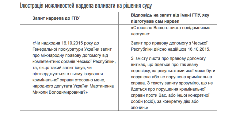 «Мартыненко прекрасно известно, что при посредничестве в международном сотрудничестве ГПУ, ему бы ничего не угрожало и в Украине, и за рубежом. Именно поэтому он убедительно отстаивает версию необходимости работы иностранных правоохранителей исключительно через ГПУ», — сказано в статье.