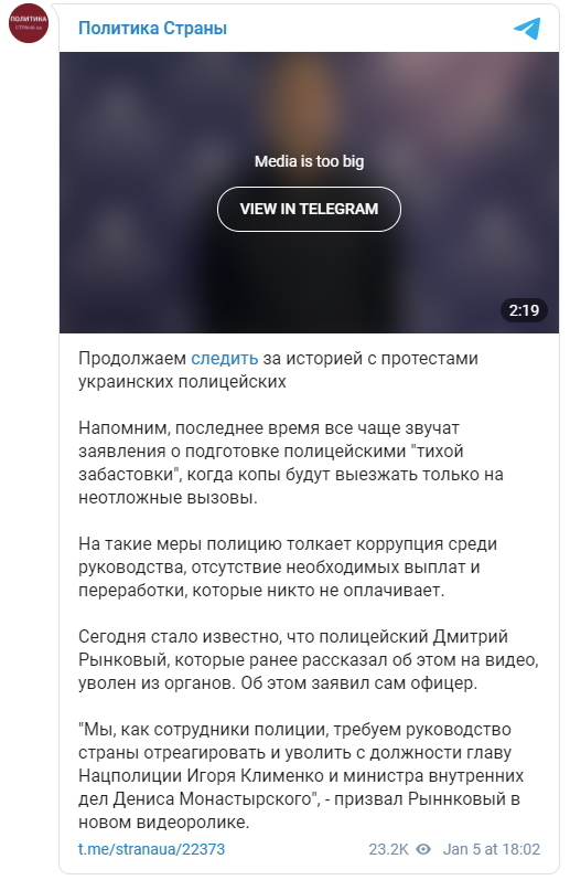 Они требуют отставки глав Нацполиции и МВД, а также выплаты денег. Если их не услышат, то они будут массово увольняться, и 30% личного состава уйдет уже в первом квартале 2022 года. Также возможна всеукраинская забастовка.