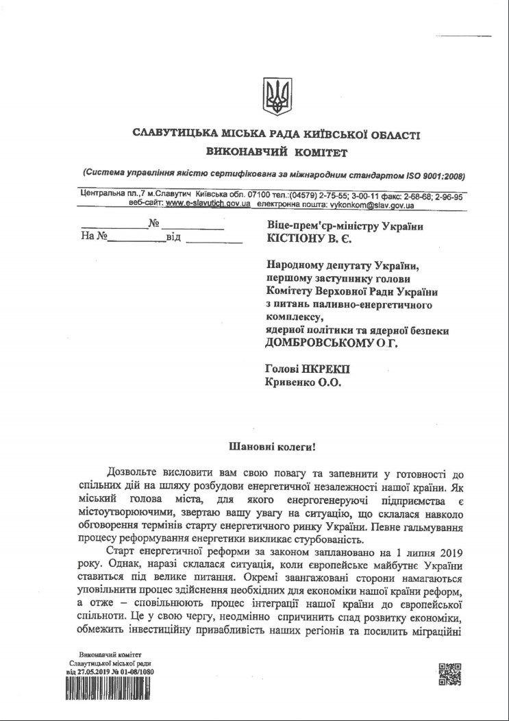 «Старт энергетической реформы согласно закона запланирован на 1 июля 2019 года. Однако, сейчас сложилась ситуация при которой европейское будущее Украины ставится под вопрос. Некоторые заангажированные стороны пытаются замедлить процесс реализации необходимых стране реформ, тормозят процесс интеграции страны в европейское сообщество», — указано в письме.