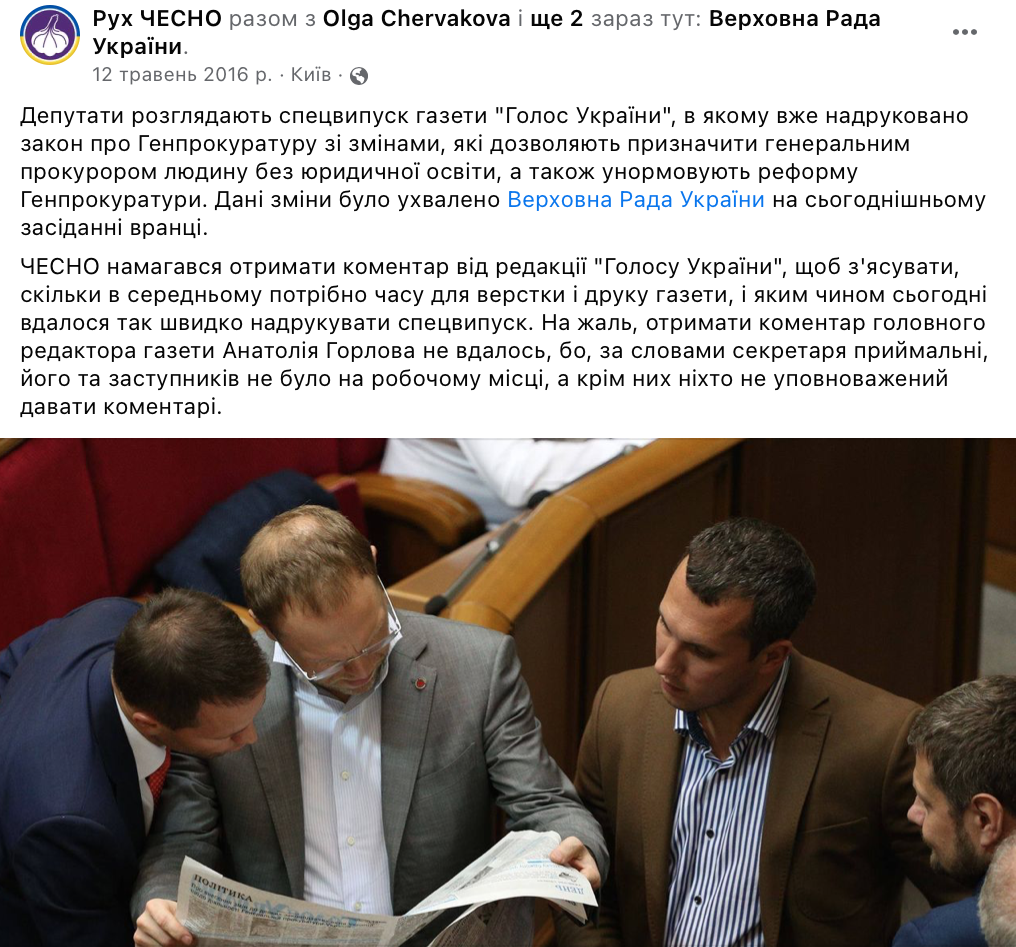 Ситуация требует внимания общества. Конечно, такие издания, как Голос Украины и Правительственный курьер, власть по-прежнему использовала в своих целях, и речь не только о цензуре. Вспомнить хотя бы 2016 год. Когда создавалась нормативная база, позволявшая Юрию Луценко без юридического образования быть генпрокурором. Тогда Голос Украины через несколько часов после голосования уже издал отголосованный проект. Соответственно, сейчас общество также должно получить ответ: почему сняли материал с официального сайта», – отмечает лидер Движения «Честно» Вита Думанская.