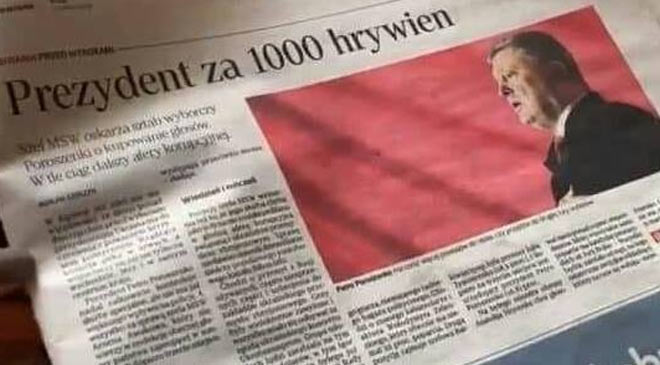 В крупном польском издании «Речь Посполитая» вышла публикация «Президент за 1000 гривен», где журналист газеты Руслан Шошин рассказал о построении вскрытой «Страной» Сетки по скупке голосов избиратеелй штабом Порошенко на грядущих выборах и скандалах, которые сотрясают Украину перед ними