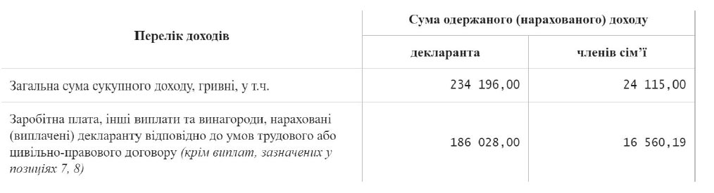 Видно сразу, что у чиновника каждая копейка на счету, ведь отдельным пунктом в декларацию он вносит 73 гривны дохода, полученного от Киевского городского центра крови. Вероятно, это вознаграждение за донорство.