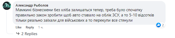 «Мамкины бизнесмены без хлеба останутся теперь. Надо было сначала правильно сделать закон, чтобы авто становилось на учет ВСУ, а то 5-10% только реально заехали для военных, а остальное перекупы все стянули», — считает Александр Рыболов.